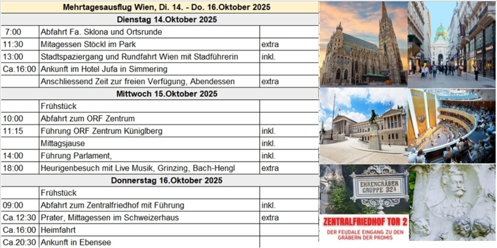 ein voller Erfolg war der 3 Tages Ausflug nach Wien mit einem Programm das sich sehen lassen durfte. Herzlichen Dank unserem Vorsitzenden Franz Lidauer welcher dafür unzählige Stunden geopfert hat.