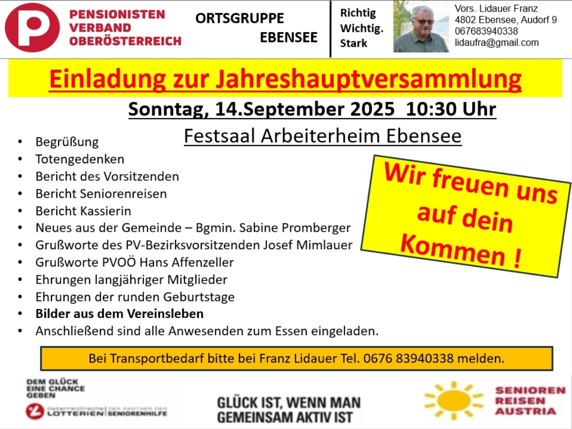 Zur Muttertagfahrt des PV Ebensee fanden sich 72 Pensionisten ein, um einen gemeinsamen Ausflug zu erleben.