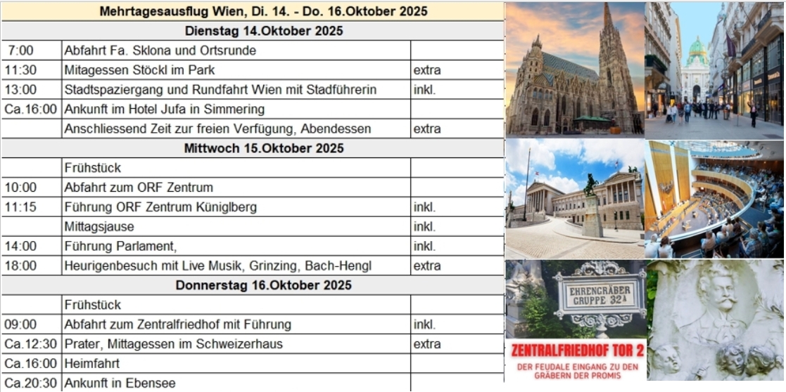 ein voller Erfolg war der 3 Tages Ausflug nach Wien mit einem Programm das sich sehen lassen durfte. Herzlichen Dank unserem Vorsitzenden Franz Lidauer welcher dafür unzählige Stunden geopfert hat.