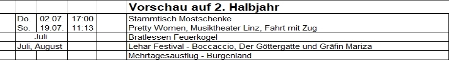Die Veranstaltungen / Aktivitäten als Monatskalender - bitte rechtzeitig anmelden